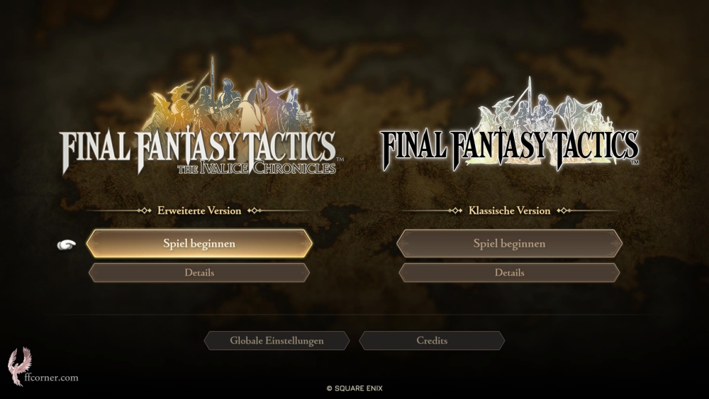 Wenn Ihr The Ivalice Chronicles zum ersten Mal startet, müsst Ihr Euch entscheiden, ob Ihr die klassische Final Fantasy Tactics Version spielen möchtet oder die Neuauflage, das Remaster oder Remake „The Ivalice Chronicles“.