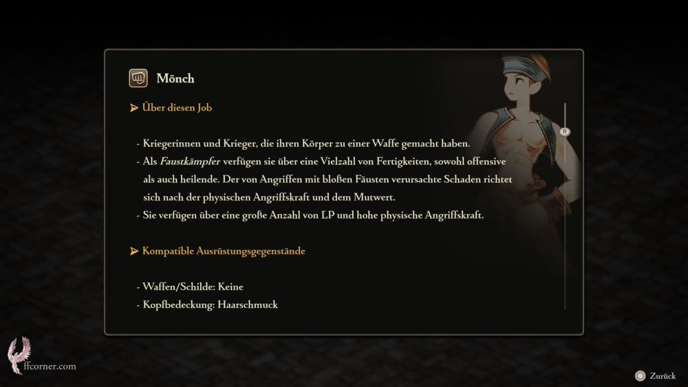 Ich habe immer sehr gerne Mönche und Dragoons gespielt. Besonders den Mönch halte ich für eine der stärksten Klassen im Spiel, da er heftige physische Attacken im Repertoire hat, aber gleichzeitig mit Chakra und Reanimation auch LP und MP heilen oder kampfunfähige Einheiten wiederbeleben kann.