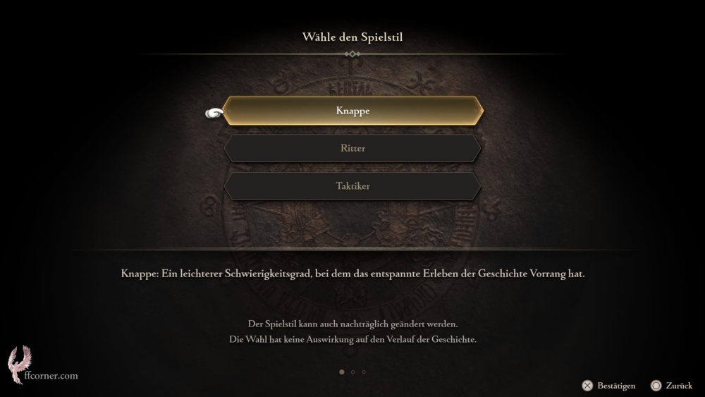 Habt keine Angst, Euch falsch zu entscheiden. Ihr könnt zwischen den Kämpfen jederzeit den Schwierigkeitsgrad wechseln. Auch hat er keinerlei Einfluss auf das Spielgeschehen oder erhaltene Belohnungen. Wählt das, womit Ihr Euch am wohlsten fühlt.