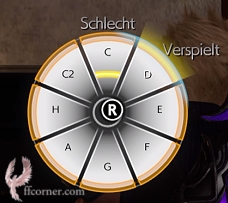 - Eure Eingabe mit dem Richtungs-Stick zwischen zwei Notenfeldern landet, gilt es als „Verspielt“.