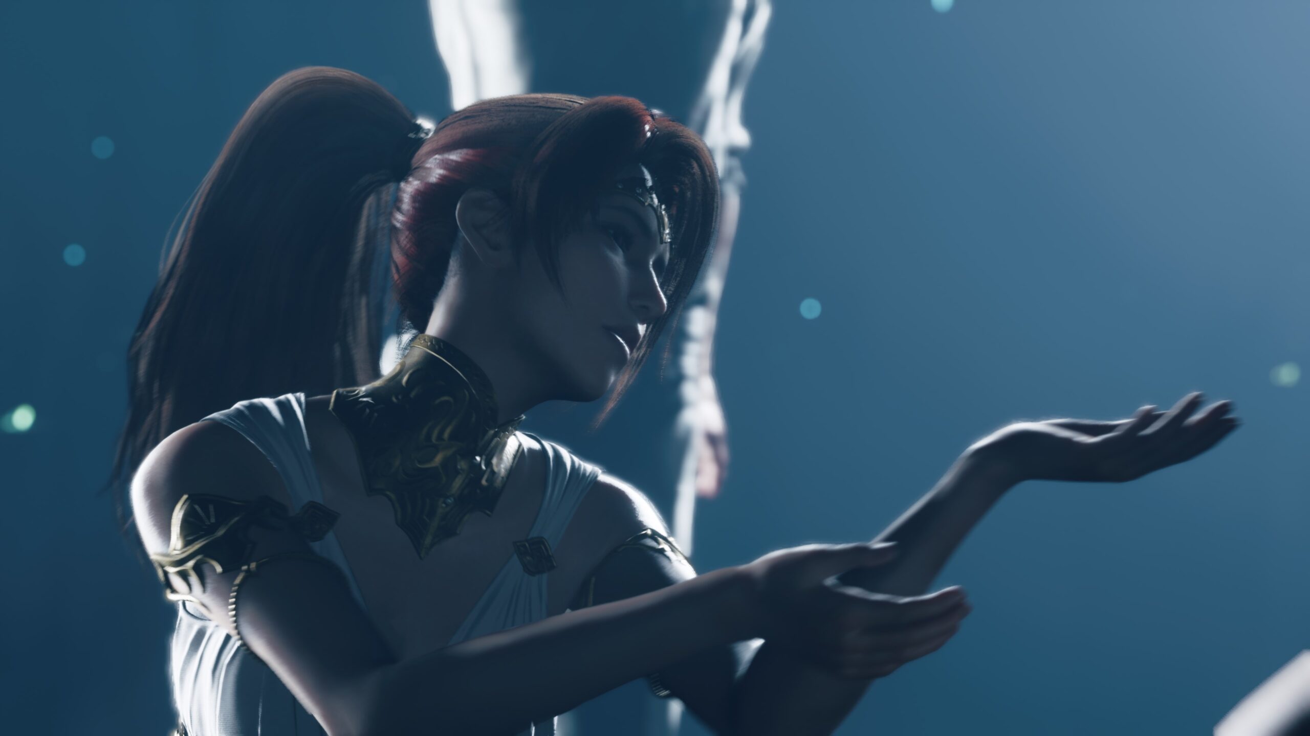 Aerith als singende Prinzessin im Loveless-Musical der Gold Saucer ist absolut bezaubernd, und ich bin sehr gespannt, ob das Theaterstück dieses Mal in einer einzigen Version canon sein wird – weil wir hier neben Cloud auch Red XIII, Cait Sith und Barret (als dunkler Ritter?) im Hintergrund sehen. Oder ob Tifa dann einen anderen Song bekommt? Ich bin gespannt!